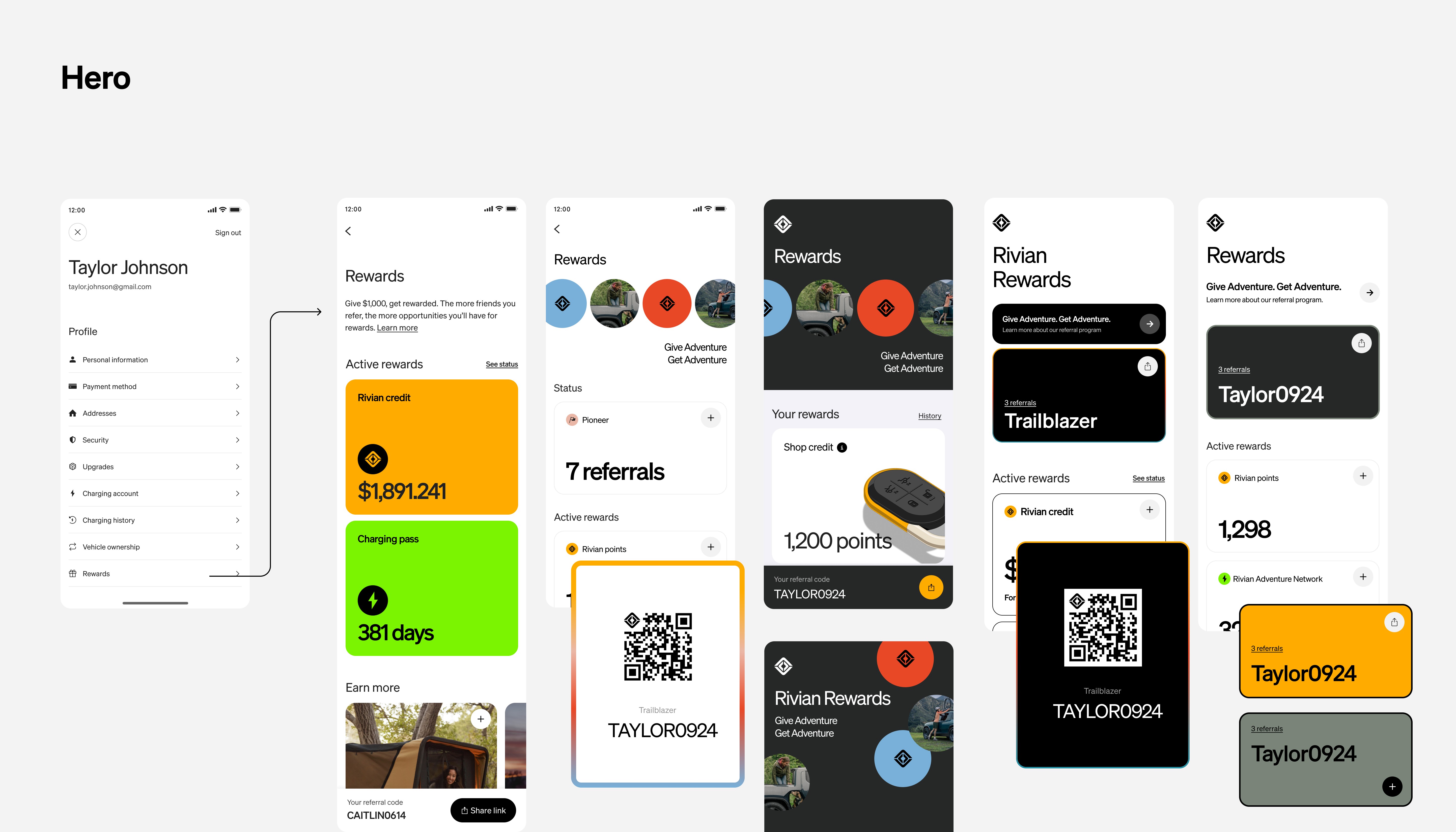 I conducted a light competitive analysis to understand the landscape of popular referral and rewards experiences. However, most existing models felt too ecommerce-driven or overly gamified—neither of which align with Rivian’s brand or user expectations. Instead, I focused on what would feel authentic to Rivian owners and fitting within the broader context of the Rivian app.
