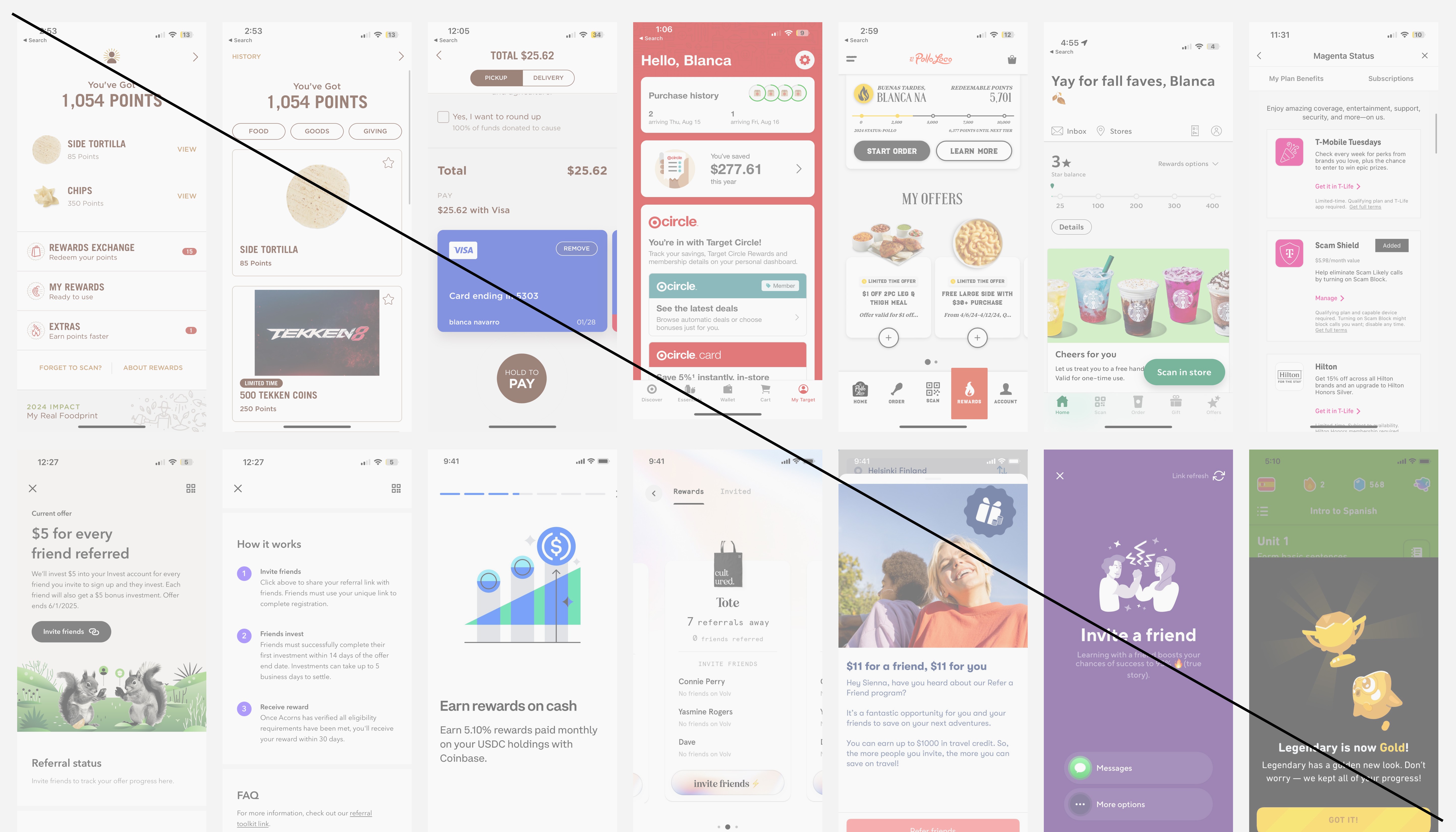Mid: A continued a push on visual design using existing photography, illustrations, etc. and introducing "branded" cards for the rewards. How might we introduce moments of delight while keeping engineering efforts low and staying on timeline?