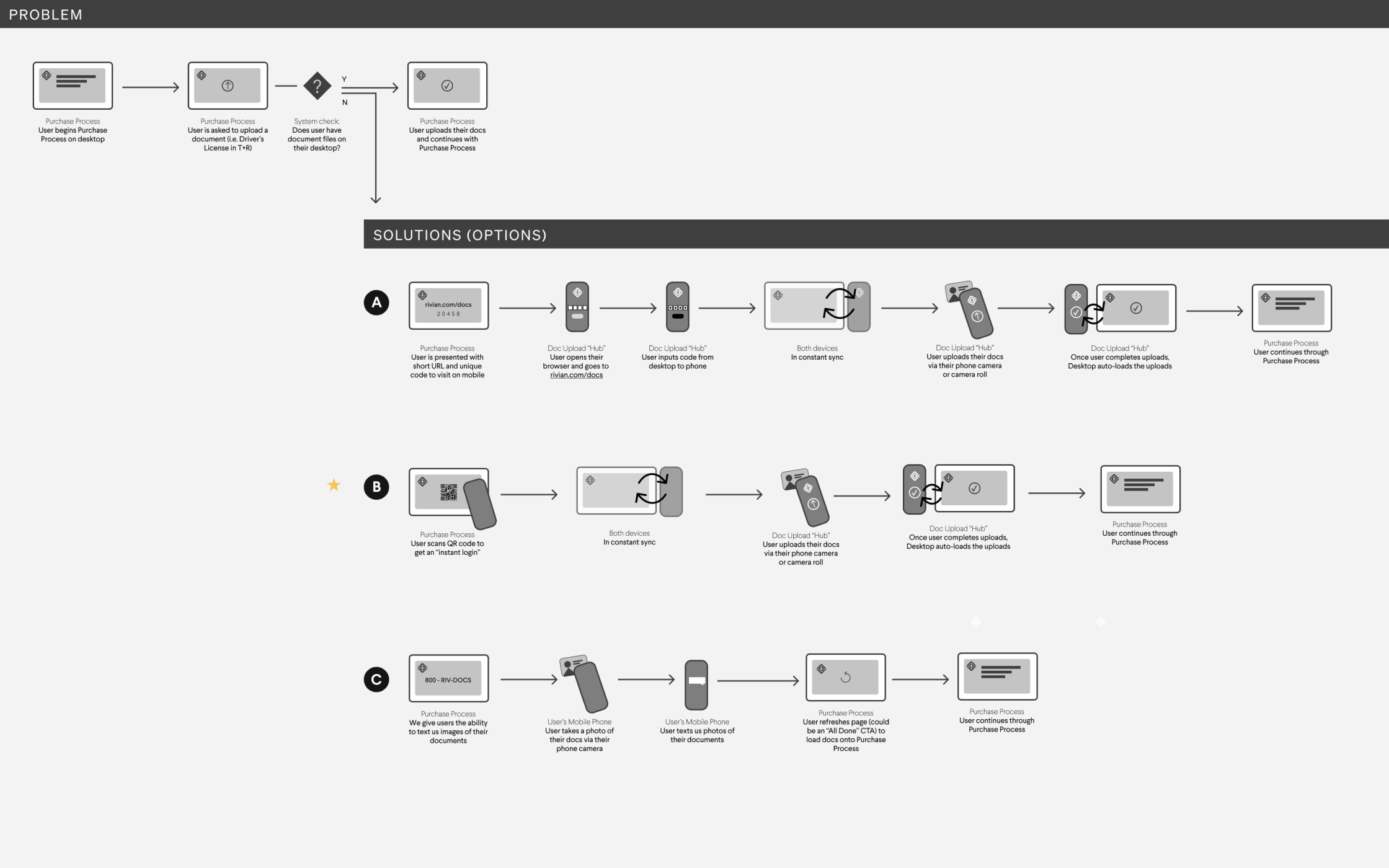 With an understanding of engineering possibilities and constraints, I outlined possible user journeys and solutions. Then, I chose the most optimal solution and recommended the direction to my stakeholders through presentation.